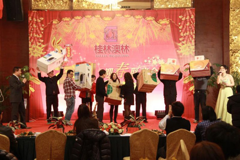為加強員工之間的交流,增強團隊協(xié)作的意識,提升公司的綜合競爭力,2011年1月29日, 澳林在這個特殊的日子迎來了以“永葆激情,再登高峰”為主題的2011年度迎春聯(lián)歡會,于桂林大正溫泉酒店隆重舉行,200名員工及邀請嘉賓共聚一堂,共同分享來自這個大家庭的幸福和喜悅!